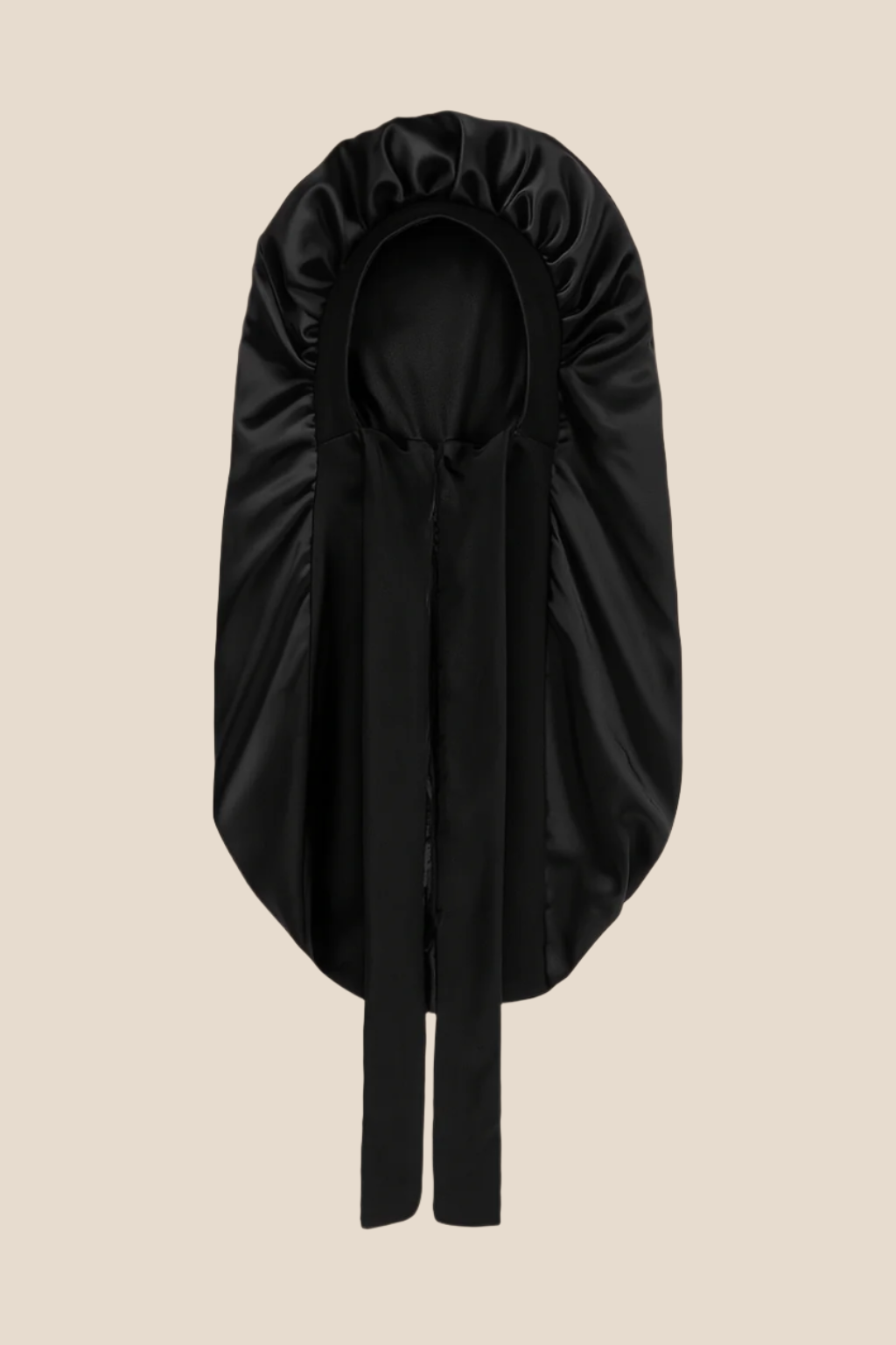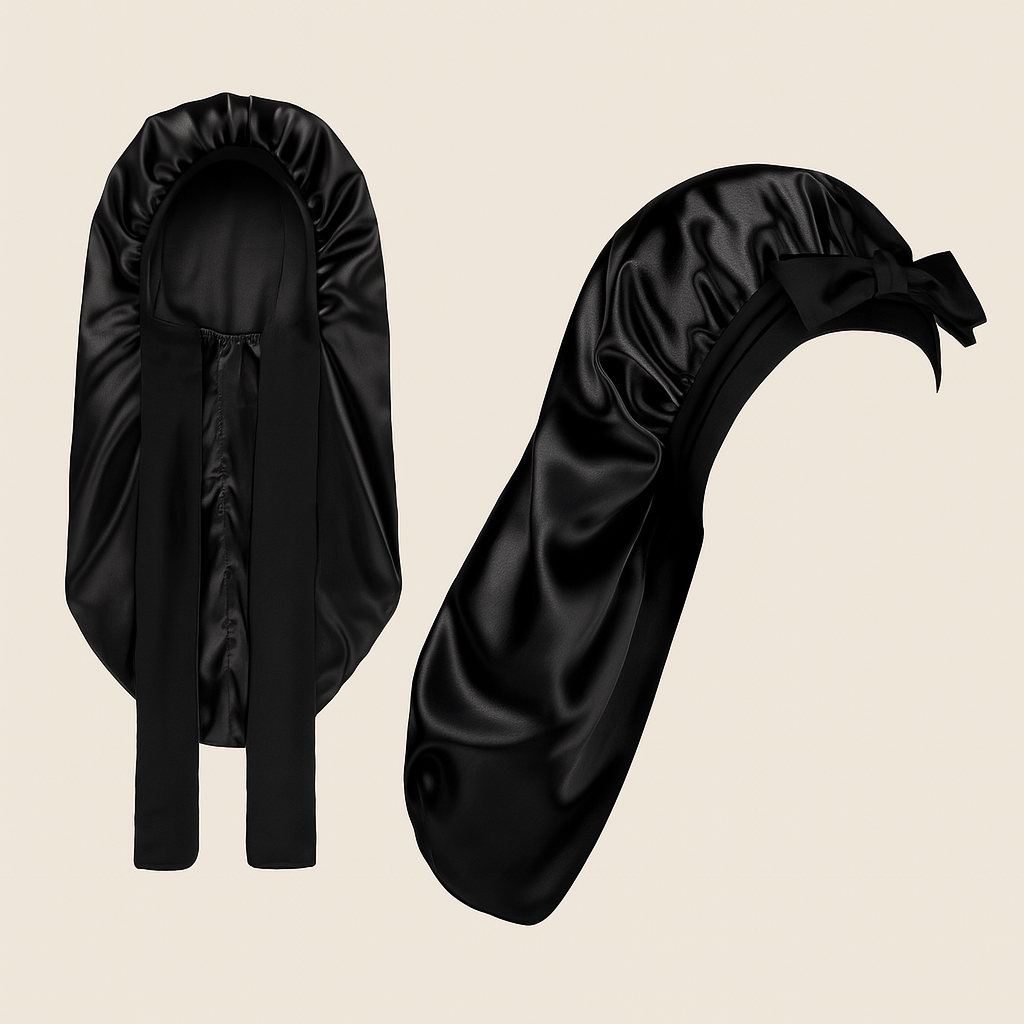Designed with generous length and a secure tie, this everyday satin bonnet helps protect long styles like waist-length braids, faux locs, or jumbo twists overnight or during lounge time. Made from lightweight polyester satin, it helps reduce friction and preserve moisture while staying soft on edges.